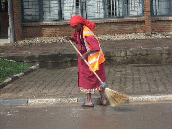 A woman cleaning the streets of Kigali.Photo: Sue Horton