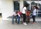 A crew of twentysomethings spend the afternoon on a bench outside the Lesotho Planned Parenthood Association. Two young women braid the hair of a third friend, and two guys sit alongside them,...