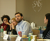 International Reporting Project Fellows are working journalists who come to SAIS on a 13 week fellowship to study international topics, and then travel overseas for international reporting. The SAIS MIPP students are a diverse mix of mid-career professionals from around the world who have worked for at least nine years prior to coming to SAIS. Many of them work in banking, consulting, with non-profits, and in the military. Some are also journalists. MIPP students spoke about the difficulty of finding in-depth international stories, and the need to browse many news sources—often on the Internet —to get the information they need. “Is anyone catering to me?” asked MIPP student Jenifer Rogers. IRP Fellows asked MIPP students how they consumed news, and several of them emphasized the need to multitask, saying they listed to radio stations such as NPR while getting ready for work in the morning. Gene Moses, a recently graduated MIPP student, said he now prefers the subscription-only TimesSelect service provided online by The New York Times, and downloads a condensed synopsis of each day’s top news stories every morning onto his iPod. MIPP students asked the IRP Fellows what affects the quality of their work today. IRP Fellows expressed frustration with shrinking newsroom budgets and staff cutbacks, and with the difficulty of funding news content on the web, much of which can be read for free. They have had to increase the quantity of stories they produce, which sometimes limits the quality of their work. IRP television fellow Barry Simmons of WTVF-TV in Nashville said some stations, in an effort to cut costs, are now experimenting with making a reporter his or her own cameraman, equipping the reporter with smaller equipment and a laptop computer. He added that television reporters now spend a greater amount of time talking live on air, leaving little time to investigate more complex stories. Several IRP Fellows say they continue to work on longer features despite time constraints. Phuong Ly, an immigration reporter for The Washington Post, takes weeks or months to write stories on immigrant communities in the Washington area. She puts in more time on the weekends than she did covering daily news in order to achieve the quality she aims for. IRP fellows also sought feedback from several military officers among the MIPP students. Joaquin Malavet, a U.S. Army officer who has served overseas on both combat and humanitarian missions, said that he reads daily morning news as part of his job and that over time he has appreciated the range of coverage. “You need to show the good, the bad and the ugly, and let people decide,” he said, commending the media for portraying many sides of the Iraq conflict. But he also expressed a desire to see more diverse coverage of non-traditional topics, such as the role of women in developing countries and conflict zones, who he says are “more important than ever around the world today.” Another officer added that military personnel are often frustrated that positive developments in Iraq don’t make the news, but said he has seen “a lot of integrity” in the news coverage, including in admitting mistakes. |