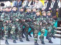 | Young fighters participate in Hezbollah's military parade, held in Baalbek, a city in eastern Lebanon.