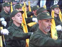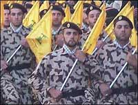 The parade continues with more fighters, who are marching past Hezbollah's sheikh Hassan Nasrallah and thousands of supporters. . |