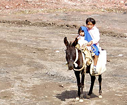 Two Wayuu girls ride their burro at a coal mine that surrounds their village. Photo by Fall 2007 IRP Fellow Krista Kapralos.