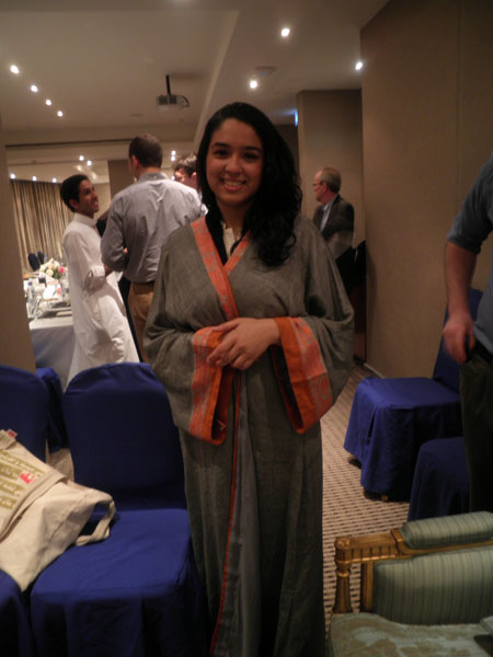 Laura Bashraheel of the Saudi Gazette in a Jedda favorite, the brown abaya.