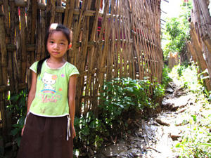 At Mae La Camp in Thailand, Si Di, 7, stands next to the lane she used to walk frequently to visit her good friend Hser Ner Moo. (Julia Lyon / The Salt Lake Tribune)