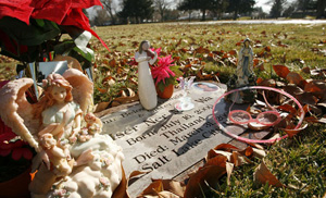 This is how Hser Ner Moo's gravesite in the Elysian Burial Gardens cemetery appeared on a morning this fall. Burmese refugees Cartoon Wah, 48 and his wife Pearlly Wa, 42, who once lived in Salt Lake City, have moved to Marshalltown, Iowa, trying to leave the painful memories behind since the murder of their 7-year-old daughter Hser Ner Moo. (Leah Hogsten / The Salt Lake Tribune)
