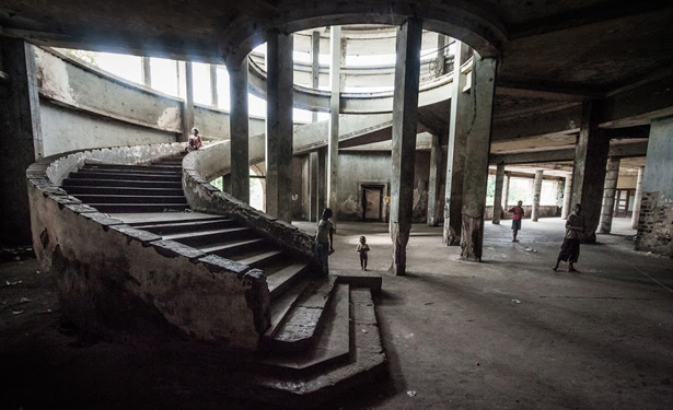 But the Catholic Church pressured them not to build the casino, the wave of guests never arrived, and the cost of maintenance proved too high. After less than a decade, the Grande Hotel was shuttered in 1963. Subsequent plans to revive it as a resort were then shelved as the country tumbled into war in the early 1970s -- first a war for independence from Portugal, then a civil war that lasted until 1991. The hotel was appropriated by the military, which used the basement for holding political prisoners, while officers lodged their families in the guest rooms. Meanwhile, the relative security that troops provided the city attracted thousands of refugees. As the military vacated the hotel, those refugees moved in; current residents estimate that by that point there were several thousand people living inside.