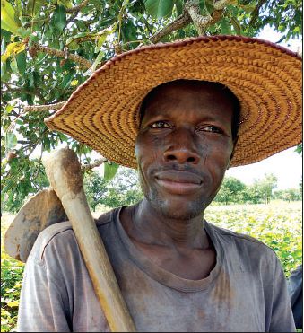 Each day, Sambo Sero balances his hand-hoe over his shoulder and disappears onto the path that is barely visible from the dirt road. He navigates the twisty route for hundreds of yards in his bare feet, through weeds as tall as he is, passing scattered hardwoods and a field planted in yams.