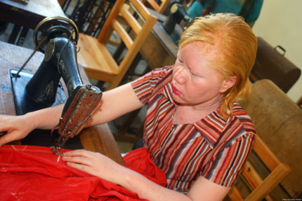 Judicka Lyamboko does not talk much but her body language says a lot. She’s a hardworking professional who is determined not to let the challenges of albinism hinder her. She dropped out of school when her eyesight deteriorated. “I could not see the board in the classroom,” she says. Now she is a seamstress, and a good one, according to an administrator at the Care Unit For Persons With Albinism in Moshi, Tanzania. She sews elaborate garments from bright printed fabrics. She is not married and says finding someone to love her has not been easy. She admits she does not know if she will ever find a man to love though she is still young, just 28 years old. She changes the topic. “Some of my colleagues were mutilated,” she says. Those colleagues were also albinos.