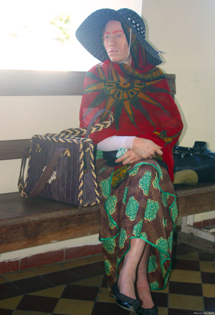Janet Anatoli has a gracious elegance that is hard to find. Her face is relaxed and a calmness flows about her. She seems to be at peace with her albinism. She wears a large hat to protect her skin from the sun and she seems to enjoy wearing it. For her it’s a piece of fashion, not a piece of protective gear. Janet is a performer with a cultural troupe that travels. The troupe is made up of PWAs. Janet sings in Kiswahili and dances with her slender limbs. She’s married. “My husband is not an albino,” she says. She has three children, none with albinism. But she wants to have an albino child and says albino children need special attention. She’s also an entrepreneur, making bed sheets and pillows. “I want the world to know my dancing skills,” she says.