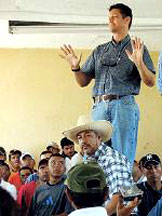 Mike Bell, a native of Mebane, N.C., talks to prospective guest workers in Santiago Ixcuintla, Mexico.