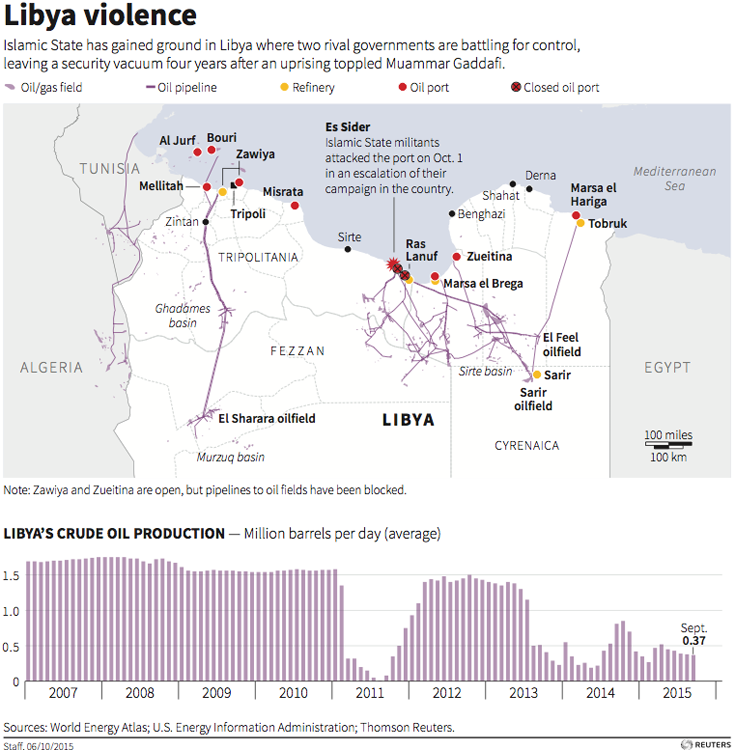 Today, Libya has two rival governments, and both Al Qaeda and ISIS affiliates operate in the country.