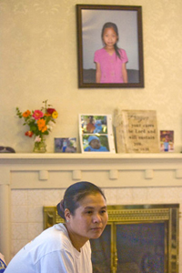 Pearlly Wa sits in the living room of a house the family rented in Sugar House after they moved away from the South Parc apartments. The house was filled with photos and remembrances of her daughter Hser Ner Moo. (Paul Fraughton / The Salt Lake Tribune)