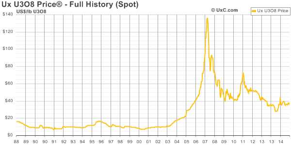 The full history of the UXC spot price. Source: The Ux Consulting Company, LLC