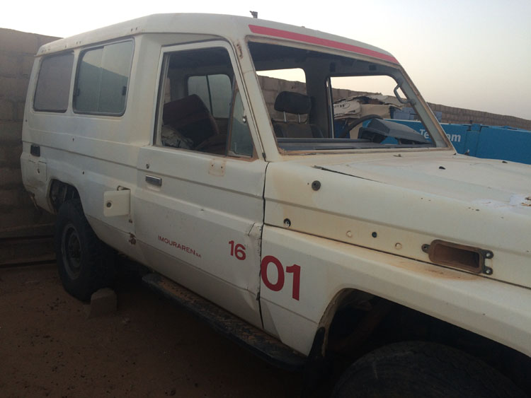 A vehicle formerly used by the Imouraren mine, which is currently closed.