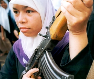 In the mist-shrouded hills looming beyond the capital, Banda Aceh, 250 women attend a lecture on international human rights laws in a makeshift meeting hall. It is the nucleus of an extensive separatist military camp, carved out of the tropical forest. Their commander, the soft-spoken Teungku Tarzura, says: "These women were not recruited. They come here on their own, they come out of concern for their country."