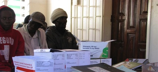 For the TB patients who show up for treatment--and attendance can be a challenge--one of the N’gombe Integrated HIV/TB Clinic’s main offering is DOTS (directly observed treatment, short-course). DOTS is the WHO-endorsed strategy for controlling tuberculosis. Staff counsel patients as a group, before the patients take their medication individually in front of a health worker.